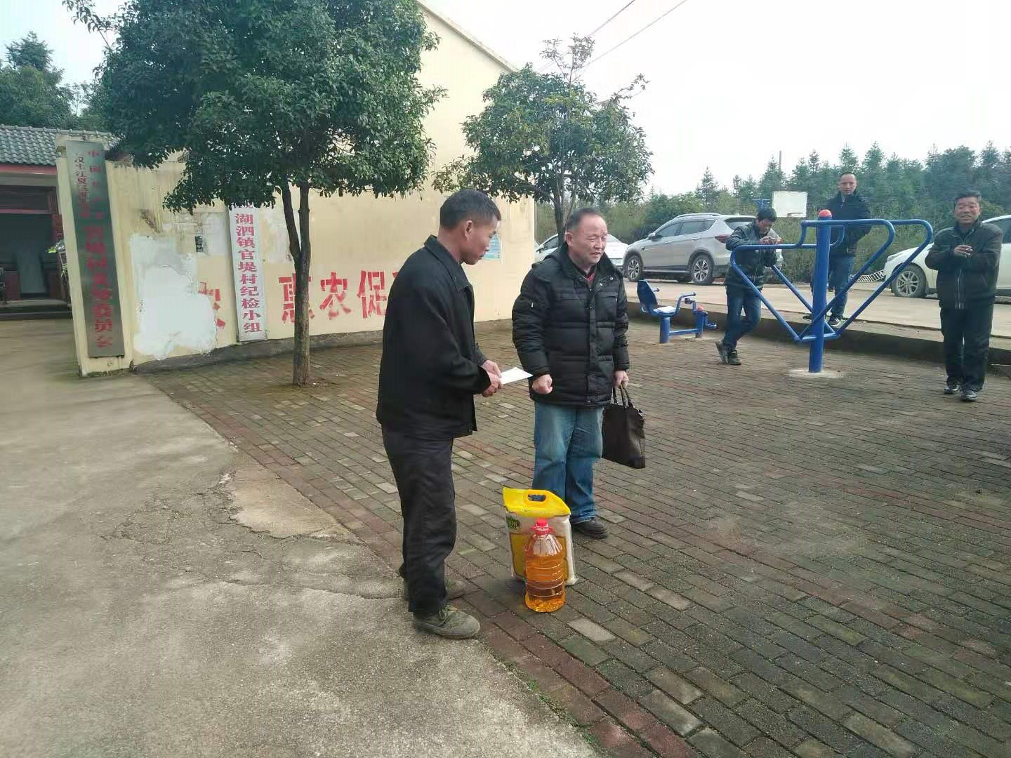 2019年新春來臨之際,為確保對口幫扶的江夏區(qū)湖泗街官堤村困難群眾安心過節(jié)。2月1日上午,武漢高科農(nóng)業(yè)集團有限公司黨委書記、董事長張曉玲帶領(lǐng)集團公司領(lǐng)導(dǎo)班子成員一行8人,奔赴江夏區(qū)湖泗街官堤村開展結(jié)對幫扶貧困戶活動,為困難戶送去了慰問品和新年問候。