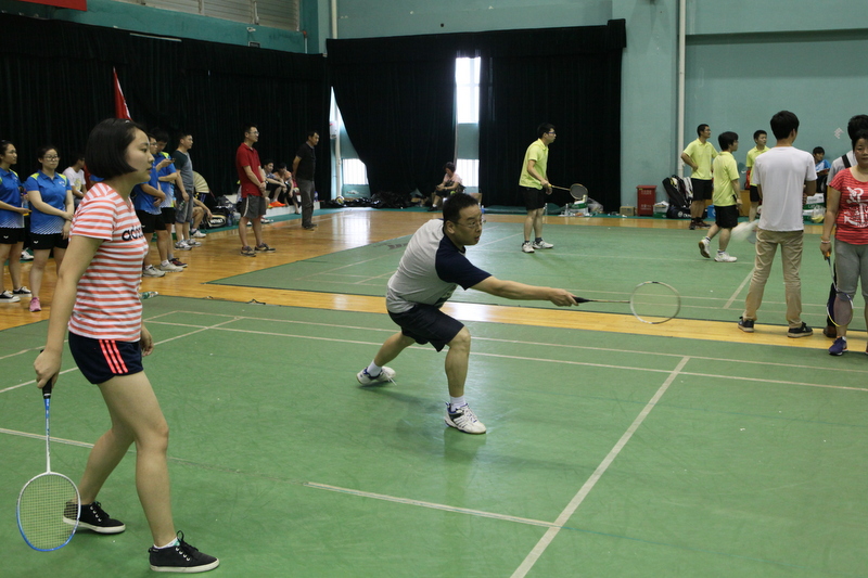 ;早上9時(shí),比賽正式開始。當(dāng)天的小組賽一共要打四回合比賽,每回合五場,按男單,女單,男雙,混雙,男雙順序進(jìn)行比賽。這么大的運(yùn)動(dòng)量對于我們運(yùn)動(dòng)員的體能是一個(gè)巨大的考驗(yàn)。在一整天的20場比賽里,集團(tuán)的參賽隊(duì)員們都發(fā)揮了很好的競技水平,比賽中不斷出現(xiàn)精彩的拉球與撲殺等場面,比分也起伏不定,每一分都牽動(dòng)著在場每個(gè)人的心。頑強(qiáng)拼搏不服輸?shù)木裨谖覀兊年?duì)員身上體現(xiàn)的淋漓盡致,特別是一些年紀(jì)大的隊(duì)員在體力透支的情況下依然堅(jiān)持完成比賽。