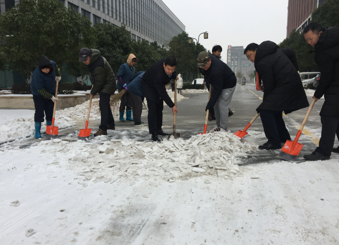 集團(tuán)公司董事長張曉玲、總經(jīng)理江中平親自帶隊(duì)上陣,鏟除道路積雪